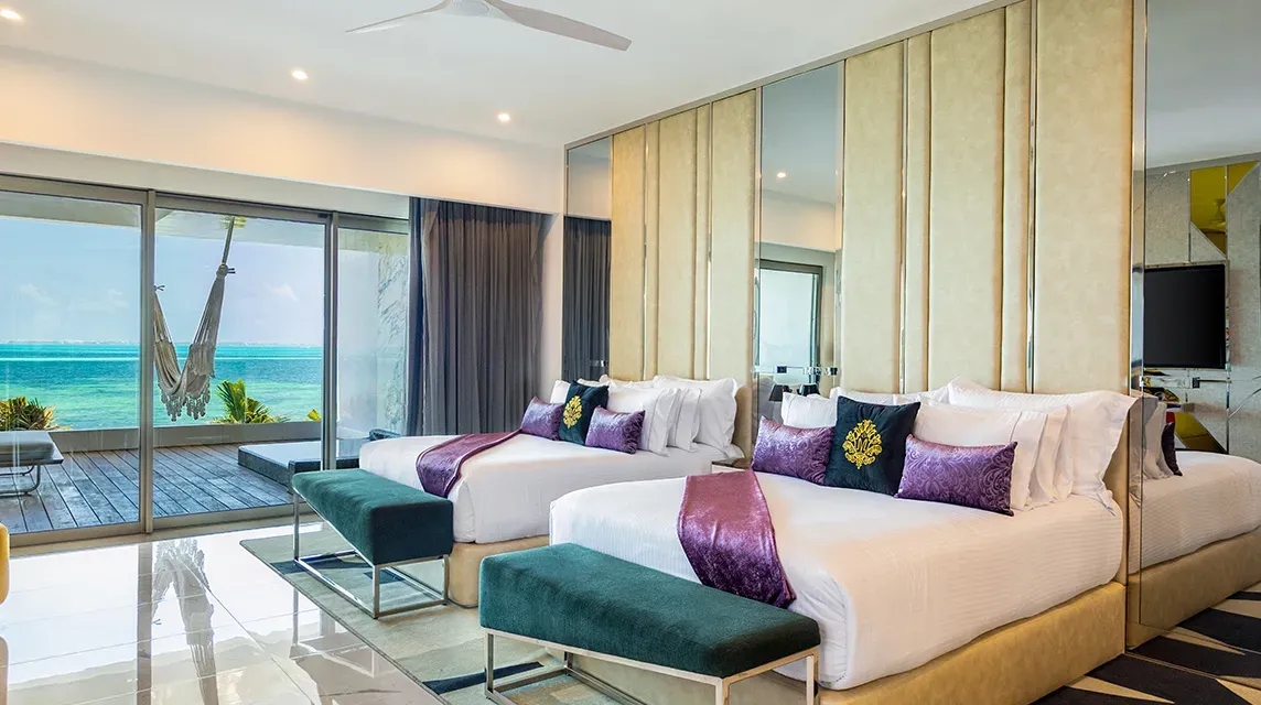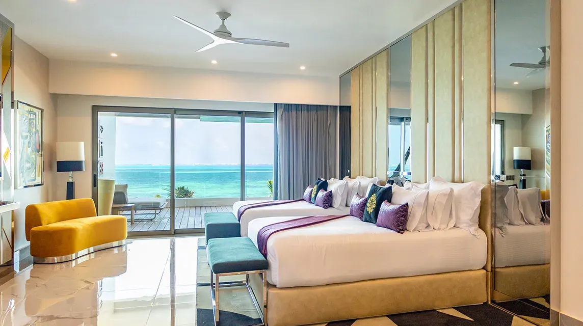 Hotel Mousai is fluent in the language of luxury, a true designer gem that began its trendsetting journey in Puerto Vallarta and has achieved legendary status for its impeccable service standards, exceptional dining, and unique aesthetic. Now in Cancun, Hotel Mousai debuts its magnificent hospitality in the Caribbean to dazzle clients with sleek and modern suites, spectacular restaurants, and a chic, vibing atmosphere. Facilities are nothing short of extraordinary, the pools offer a splashing mix of relaxation and party for clients to immerse in delightful days of sun-soaked leisure, and glitzy evenings under the stars. Additionally, guests of Mousai Cancun are welcome to explore and enjoy the facilities of Garza Blanca Cancun, the dreamy sister resort also by TAFER, located next door, where additional restaurants and services are offered, such as the breath-taking SPA Imagine and a state-of-the-art Gym, taking clients into the realm of deep bliss and wellness.